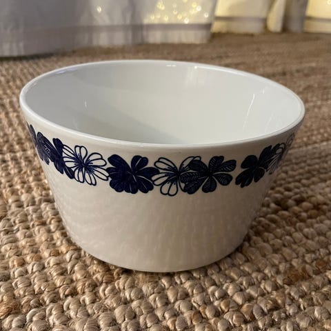 Arabian Primavera kulho, 1971, hyvä kunto, ollut käytössä vain jouluisin (sekahedelmäsoppaa) Esteri Tomulan koriste.