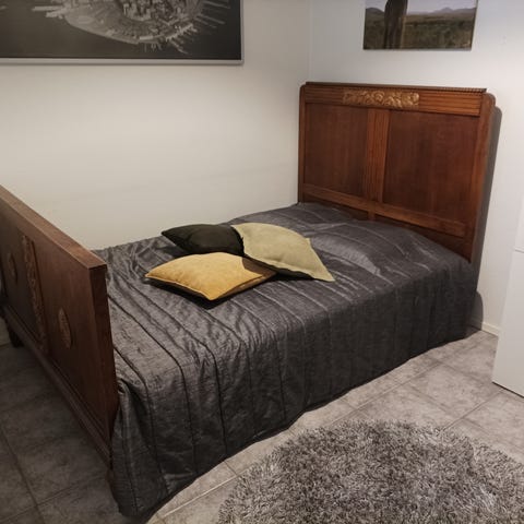 Upeat liekkipetsatut antiikkisängyt. Voi pitää yhdessä tai erikseen. Valmiiksi purettuna helppo kuljettaa vaikka henkilöautolla. Sopivat patjat kaupan päälle.
