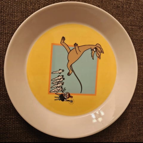 Myydään kuvan muumi keräily lautanen, lautanen on nimeltään Juoksujalka ja se on ollut tuotannossa vuodet 2009-2013. Poistunut siis jo myynnistä 12 vuotta sitten.