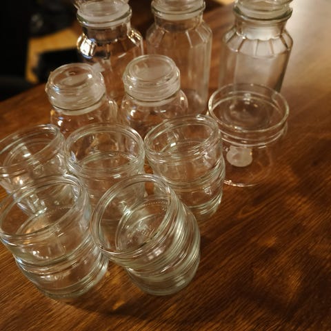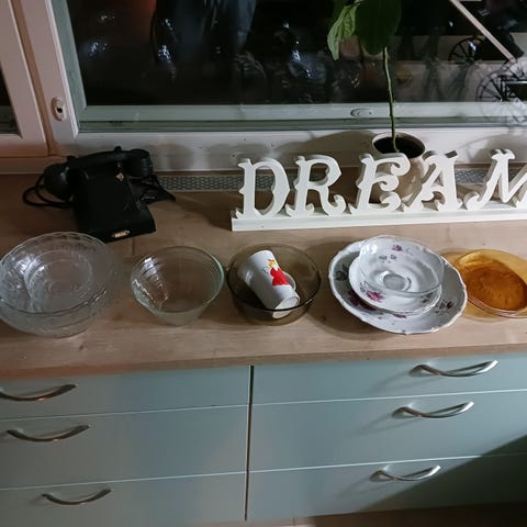 Iso kulho ja pieni lasiastia, molemmat ehjiä. Yht. 8 e