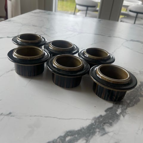 Arabian Kosmos munakupit 6kpl kuin uudet. Puhalluskoriste ja värilasite. Suunnittelija: Gunvor Olin-Grönqvist. Valmistettu vuosina 1963-1976. Kork. 4cm,halkaisija 7cm. Voin lähettää pk ostajalle.