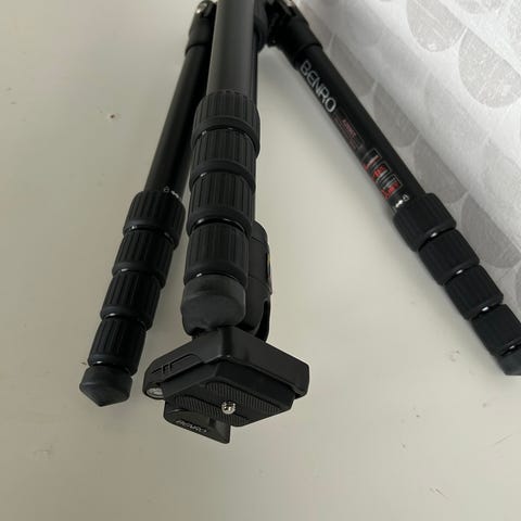 Benron hiilikuituinen kolmijalka. Vain vähän käytetty eli erinomaisessa kunnossa.