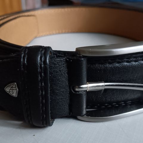 Pari kertaa käytetty miesten vyö. Pituus 120cm. Laatan koko 8 x5 cm.
