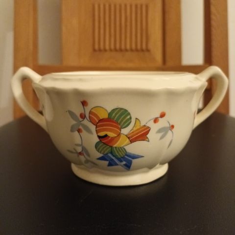 Hyväkuntoinen, vanha, Aino Aallon suunnittelema sokerikko. Korkeus 6 cm, halkaisija 10,5 cm.