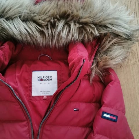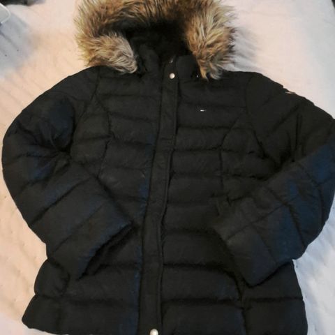 Siistikuntoinen untsikka, 75% untuvaa eli lämmin on. Kokomerkintä L, mutta mielestäni enemmän M-kokoa. Naisellinen malli jossa vyötäröllä resori. Kunnossa ei muuta huomautettavaa kuin ripustuslenkin alla oleva bränditägi on irti, ripustuslenkki ei. Huppuun on myös irroitettava tekokarvareunus.