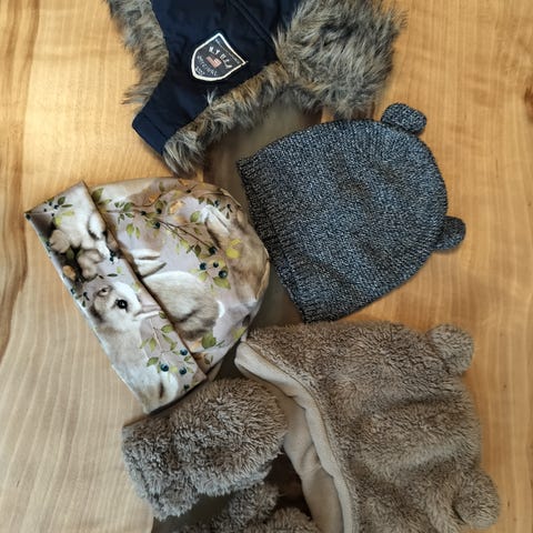 Sametti sydän -merkin (hand made) peura-kuosilla housut ja hattu.