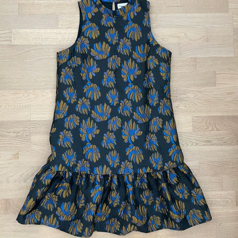 Ostettu Lindexiltä ja käytetty vain muutamissa juhlissa. Ihanan kevyttä ilmavaa kangasta oleva mekko. Edessä juhlavat röyhelöt. Kaunis kuosi. Koko L. Vastaa kokoaan.