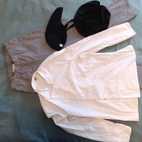 Myydään hyvässä kunnossa oleva kokin vaatetus setti! Mukana löytyy essu, kokintakki (koko: 52) sekä housut (koko: 48). Merkki Image Wear. Muuten moitteeton, mutta housuissa pieni tahra ( näkyy viimeisessä kuvassa, ja uskoisin että lähtee). 🖤