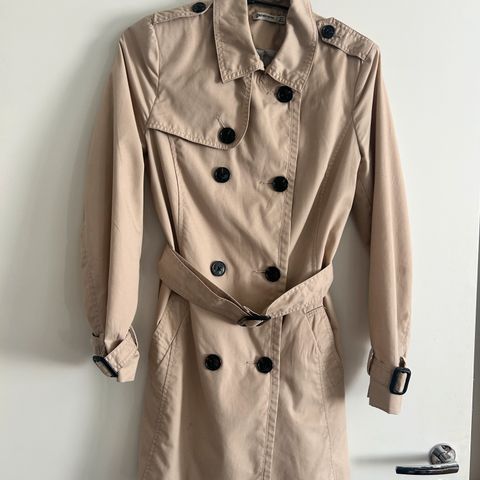 Pari kertaa käytetty Stradivariuksen trenssitakki. Erittäin hyväkuntoinen, ei käytönjälkiä. Koko S, mutta vastaa ehkä paremmin XS kokoa.