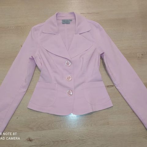 Bleiseri tyköistuva. Housut leveälahkeiset ja "low waist loose fit stretch"