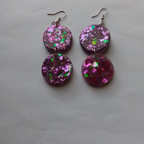 Uudet glitter korvakorut. Huvituskoru suomalainen pieni koruvalmistaja. Persikan väristä glitteriä ja pinkin väristä glitteriä. Korkeus noin 4.5 cm. Kevyet korvissa, tappi kiinnitys.