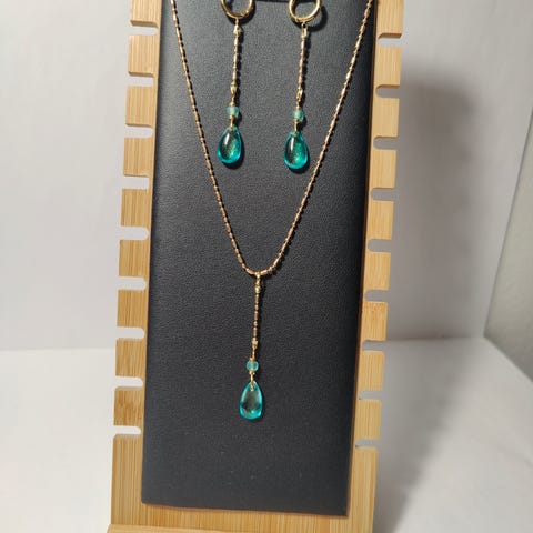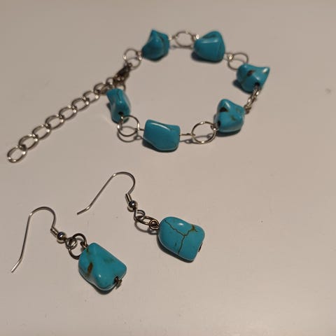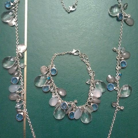 Näyttävä korusetti kaulaan ja ranteeseen.