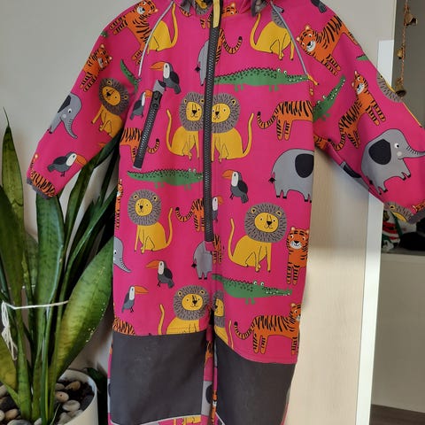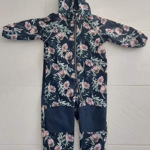 Meille uutena ostettu, yhden lapsen käyttämä, koon 86 softshell-haalari. Mielestäni reilua mitoitusta. Hyvin siistissä kunnossa. Ei moitteita polvissa eikä pepussa. Juuri pesty. Hajusteeton pesu. Koiratalous.