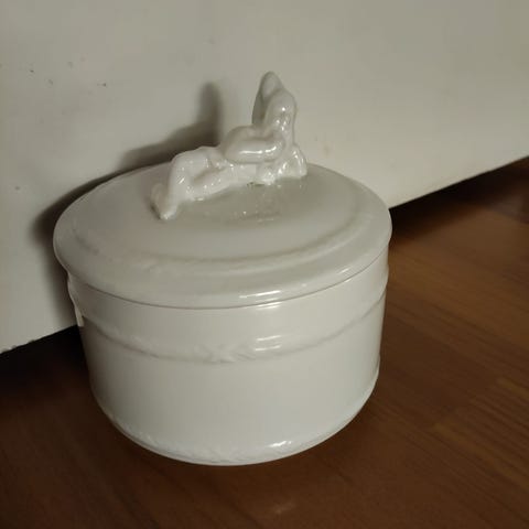 Vintage Gustavsberg keraaminen Apoteks Senap - apteekin / apteekkarin sinappipurkki / sinappi / purkki / purnukka astia , jossa on korkki kansi.