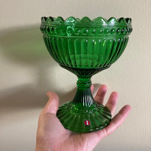 Marimekko iittala AITO koristekulho, valmistettu sinisestä lasista. Kulho on jalallinen ja siinä on koristeellinen kuviointi. Sopii sisustukseen ja koristekäyttöön. Haku Porista tai postitus ostajalle.