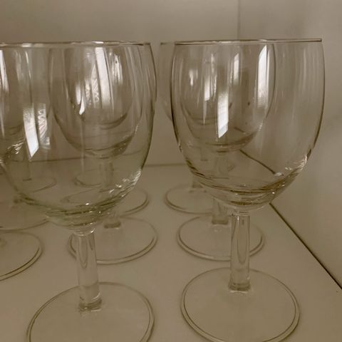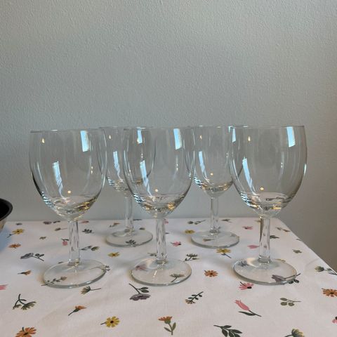 Viisi kappaletta isoja viinilaseja, menee hyvin cocktail-laseista.