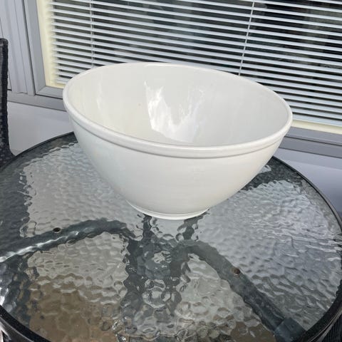 Arabia kulho, halkaisija noin 24 cm, valmistettu valkoisesta posliinista. Soveltuu keittiövälineeksi esimerkiksi ruoan tarjoiluun tai valmistukseen.