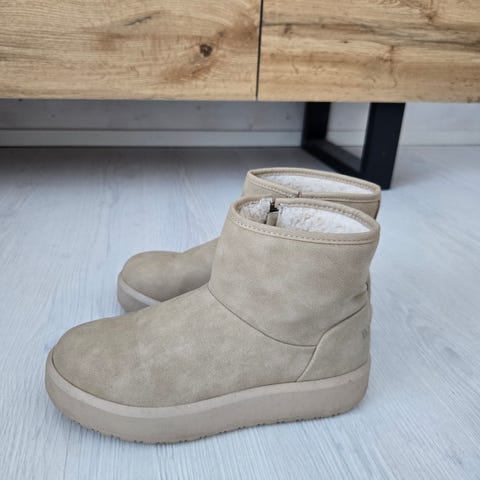 Itselle isot, joten myyntiin. Toisen kengän takasaumassa lanka osittain purkautunut (ks kuva)