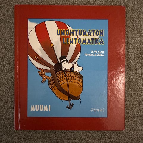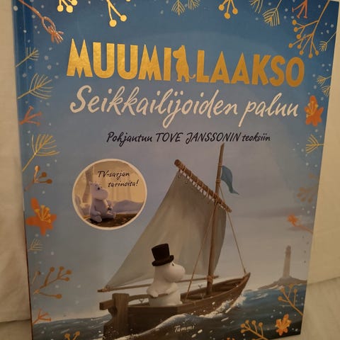 Käyttämätön Muumi vieraskirja. Kansisivulle pieni taiteilija on ehtinyt piirtämään haaleasti (viimeinen kuva).