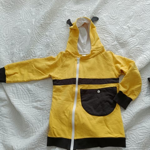 Erinomaisessa kunnossa oleva huppari. Lohikäärmeitä vaalean sinisellä pohjalla. Värit ovat pysyneet hyvänä, en löydä moitteita. Ehkä yksi langanpätkä meinaa kettuilla mutta ei näy ulospäin. Erittäin laadukas. Ei ole raaskittu pitää muutamaa kertaa enempää.