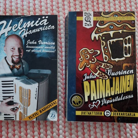 8 kpl Juha Vuorisen pokkareita. Hyvässä kunnossa, luettu muutamat kerrat läpi.