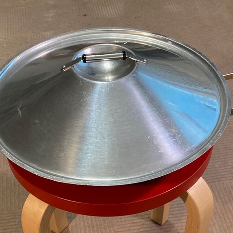 Wok pannu tyylikkäällä teräskannella. 80-luvun tyyliä. Ei sovellu induktioliedelle.(myynnissä muutkin sarjan kattilat erillisellä ilmoituksella)