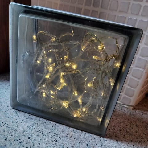Lasitiilikivi, jonka sisällä koristevalo. Koko 19x19 cm.