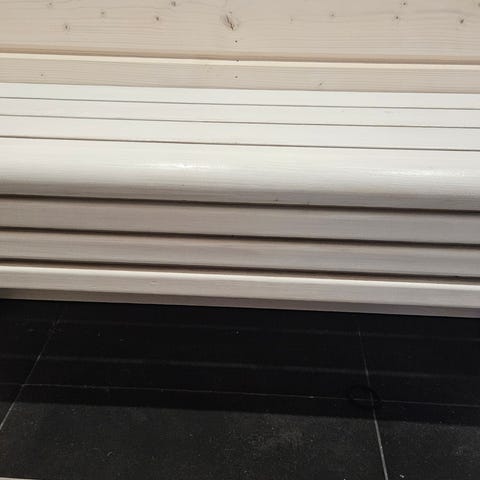 Myydään greigen värinen penkki jossa kaksi isoa vetolaatikkoa.