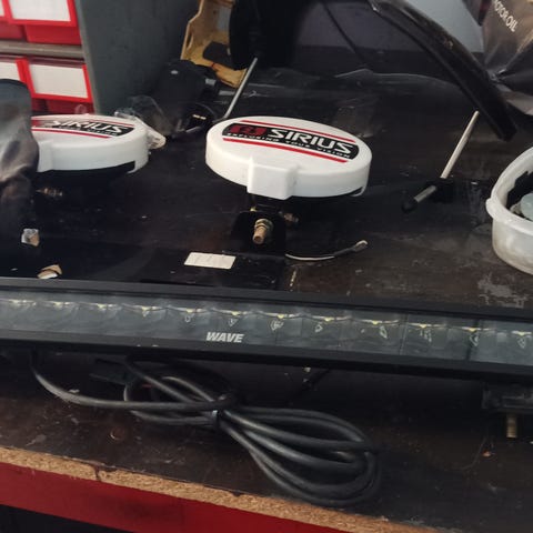 Käyttämättömät lisävalot pois alta joita en itse saanut aikaiseksi asentaa. 7 tuumaiset lisävalot 3 kpl ja teline. Valojen mukana paketissa DT4-liitin 500mm kaapelilla & adapteri.
