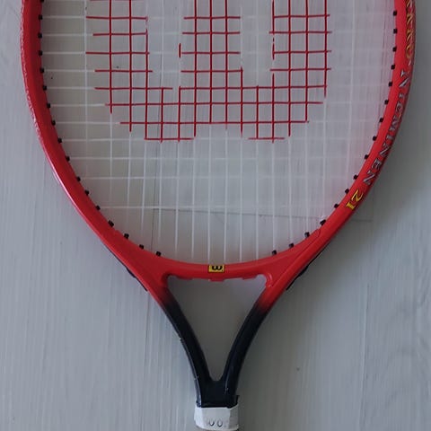 Myynnissä Wilson-tennismaila hyvässä kunnossa. Mukaan alkuperäinen Wilson-suojapussi. Maila sopii hyvin harrastajalle tai aloittelevalle pelaajalle.
