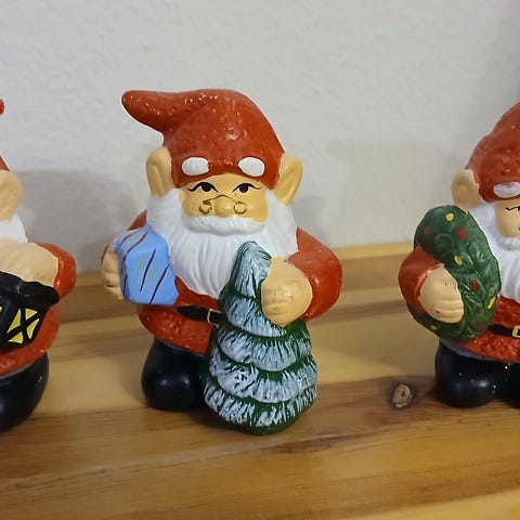 Upea paketti joulutonttuja rakastavalle henkilölle ja jouluttajillahan ei voi koskaan-ikinä-milloinkaan olla liikaa tonttuja! Paketissa 8 kpl toinen toistaan suloisempia tonttuja. Joulutontut ovat erikokoisia, erilaisia ja eri aikakausilta; niin vanhoilta ajoilta kuin hieman modernimpaa aikaa edustavana Pentik jne tontut. Tontut ovat kuvien mukaisessa hyvässä kunnossa ja katsothan kaikista paketissa olevista tontuista otetut yksittäiskuvat.