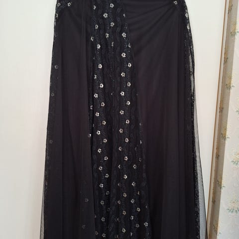 Kaksiosainen satiini juhla asu, pehmeä roosa / beige. Hienostuneet yksityiskohdat. Valmistaja, L kolttu. Koko 36-38. Hame: pituus 85cm, kuminauhavyötärö. Yläosa vapasti laskeutuen, 56cm, kai-kai 58cm, helma jää löysästi/rennosti ja kauniisti ( voi kiepaista alle).