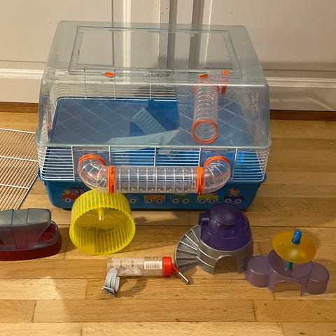 Hamsterin häkki uutena ostettu ja kaikki osat tallella. Yhdessä kulmassa pieni halkeama mutta on tuon keskiosassa olevan valkoisen kulmapalan alla joten ei haittaa käyttöä. 57 korkea, 55 leveys, 35Vaatii pesua. Sijaitsee Akaassa liikkuu omien menojen mukaan Tampere ja lähialueet.