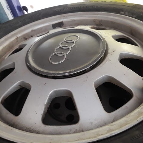 Audin melkolailla virheettömät alkuperäisvanteet huonoilla Michelin Primacy 4 kesärenkailla (paisto 19/2021). Kuvissa likaiset ja pulttien päälle tulevat "keskikupit" ei paikallaan mutta tulevat mukaan. Pultit eivät sisälly.