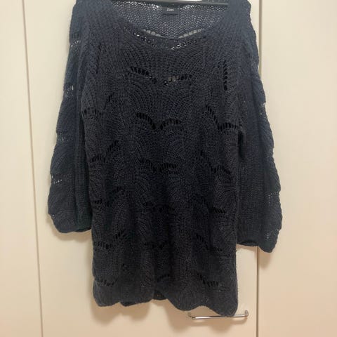 Tummansininen Zizzin 3/4 osa hihoilla oleva neule. Kainalosta kainaloon 65cm, pituus 70cm.