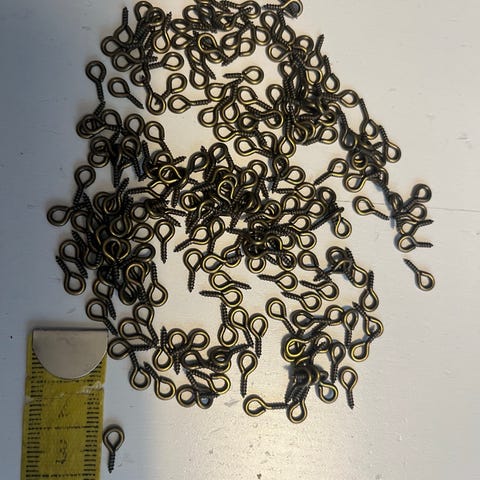 Kasa pieniä ruuvikoukkuja. Voin lähettää myös kirjeenä, ilman toridiiliä.
