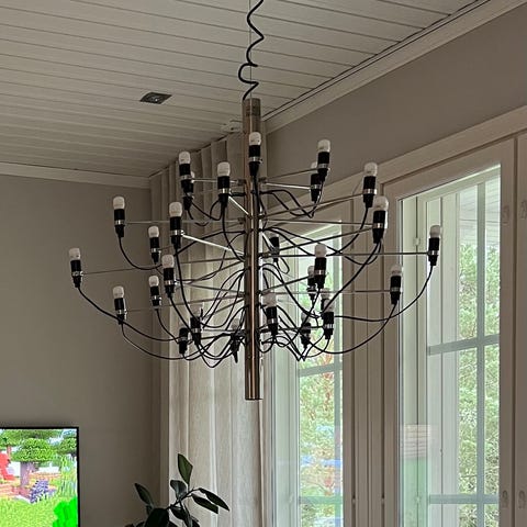 Flos 2097/18-kattokruunu, messingin sävyinen teräsrunko. 18 x 1,5W kirkas himmennettävä LED.