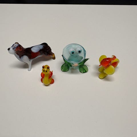 Kokoelma (6kpl) hyväkuntoisia pieniä kauniita lasi eläimiä. Esim kissan korkeus n 7cm.
