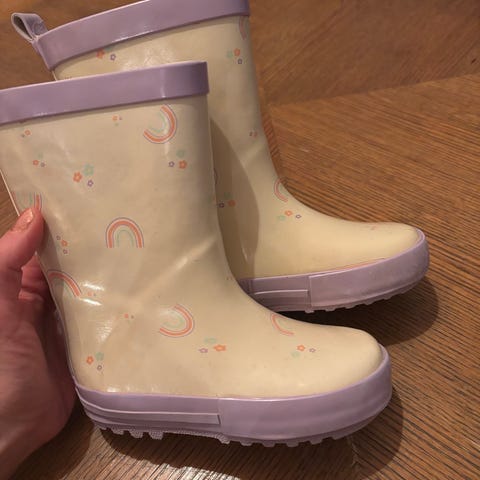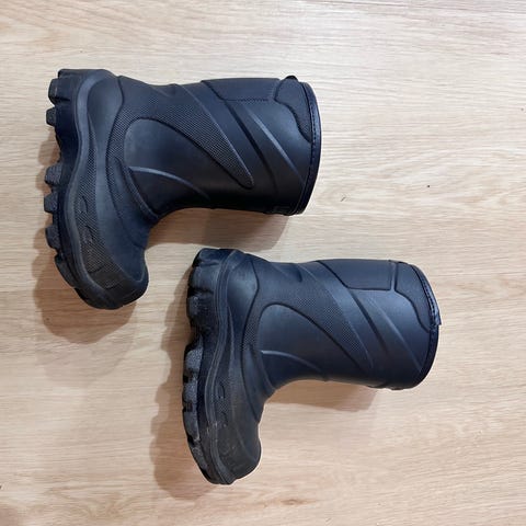 Ehjät kumisaappaat. Käytetty ja käytettynä ostettu, joten etenkin valkoinen väri on jo kellastunut.