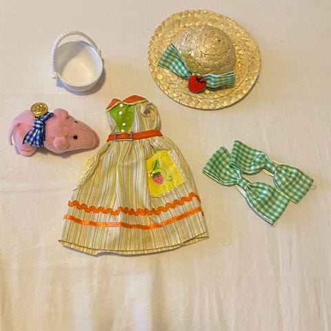 Asu on Licca chanin. Toisessa käsivarressa oli hieman värjäytymää, jota sain haalistettua pois, mutta samalla lähti hieman väriä pois.