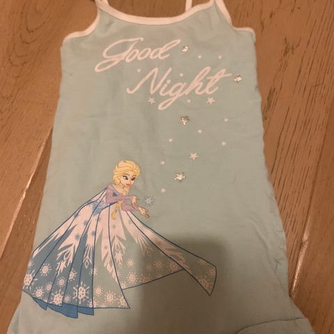 Disney/Marks & Spencer. Kullanvärisellä langalla kirjailtu prinsessa Elsan kasvokuva paidan etumuksessa. Materiaali pehmeää polyesteri-velouria. Meillä toiminut mm. hyvin talvella ohuemman yöpuvun päällä, kun lapsi potkii yleensä peiton pois. Hyvä käytetty kunto (hienoista nyppyä resoreissa). Kissatalous.