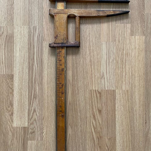 Antiikki / vintage työkalu on köysimittari, jota käytetään erilaisten köysien ja ketjujen, kuten vaijeriköyden, hamppuköyden ja ketjun, koon mittaamiseen.
