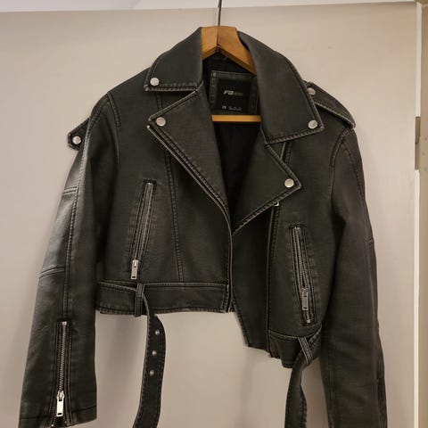 Musta ja harmaa ohutvuorinen nahkarotsi, aitoa nahkaa.