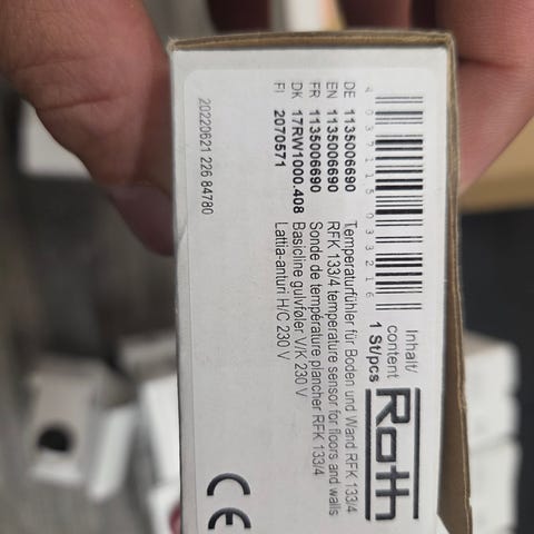 Myydään ylimääräiseksi jäänyt Rothin lattialämmityksen huonetermostaatti ja anturipiuha