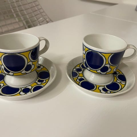 Kuvanmukainen Arabian kahvisetti kotiin, mökille. Kannu, kupit ja lautaset.
