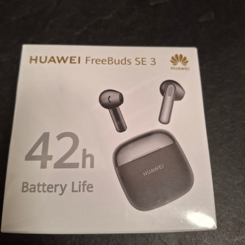 Huawei FreeBuds SE 3 langattomat kuulokkeet harmaassa värissä. Kuulokkeiden akunkesto on jopa 42 tuntia latauskotelon kanssa. Kevyt ja kompakti muotoilu ergonomisella suunnittelulla. USB-C latausliitäntä. Soveltuu yleiskäyttöön.