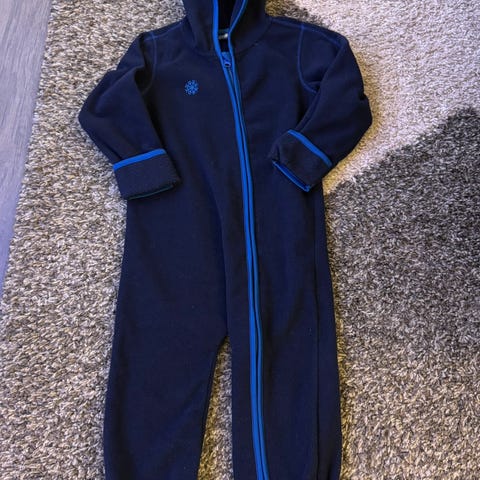 Pehmeä fleecesisävuori. Vetoketju toimii ja kaikki ehjää. Jalkopäässä kengänalus nyörit.