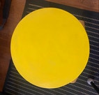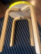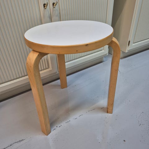 Hyväkuntoinen, istuinosa maalattu keltaiseksi, kahdessa jalassa ruuvinjälkiä.