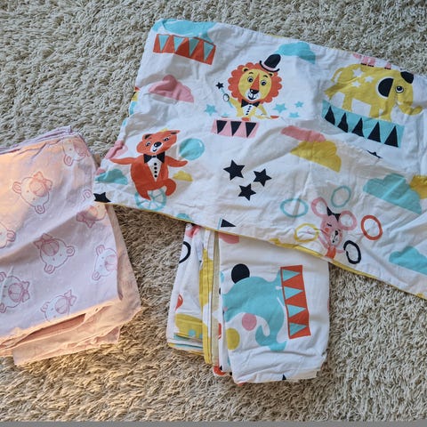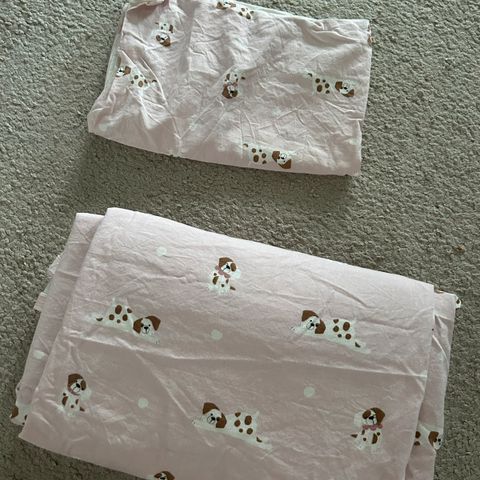 Käytetty setti. Yhdessä kohti saumaa reikä, joka paikattavissa.