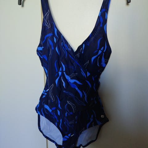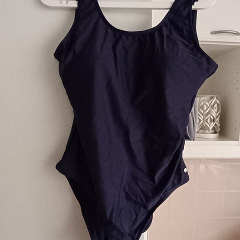 Uusi Finnwearin Eden uimapuku. Kevyesti topattu, rypytys sivuissa, muotoileva vuori. Laput kiinni ja hygieniasuoja paikoillaan.